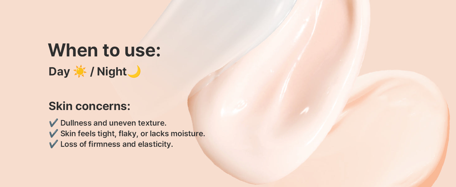 Apply evenly to clean skin, using upward circular motions to massage it in. It works perfectly as a day or night cream for all-day hydration and revitalization.