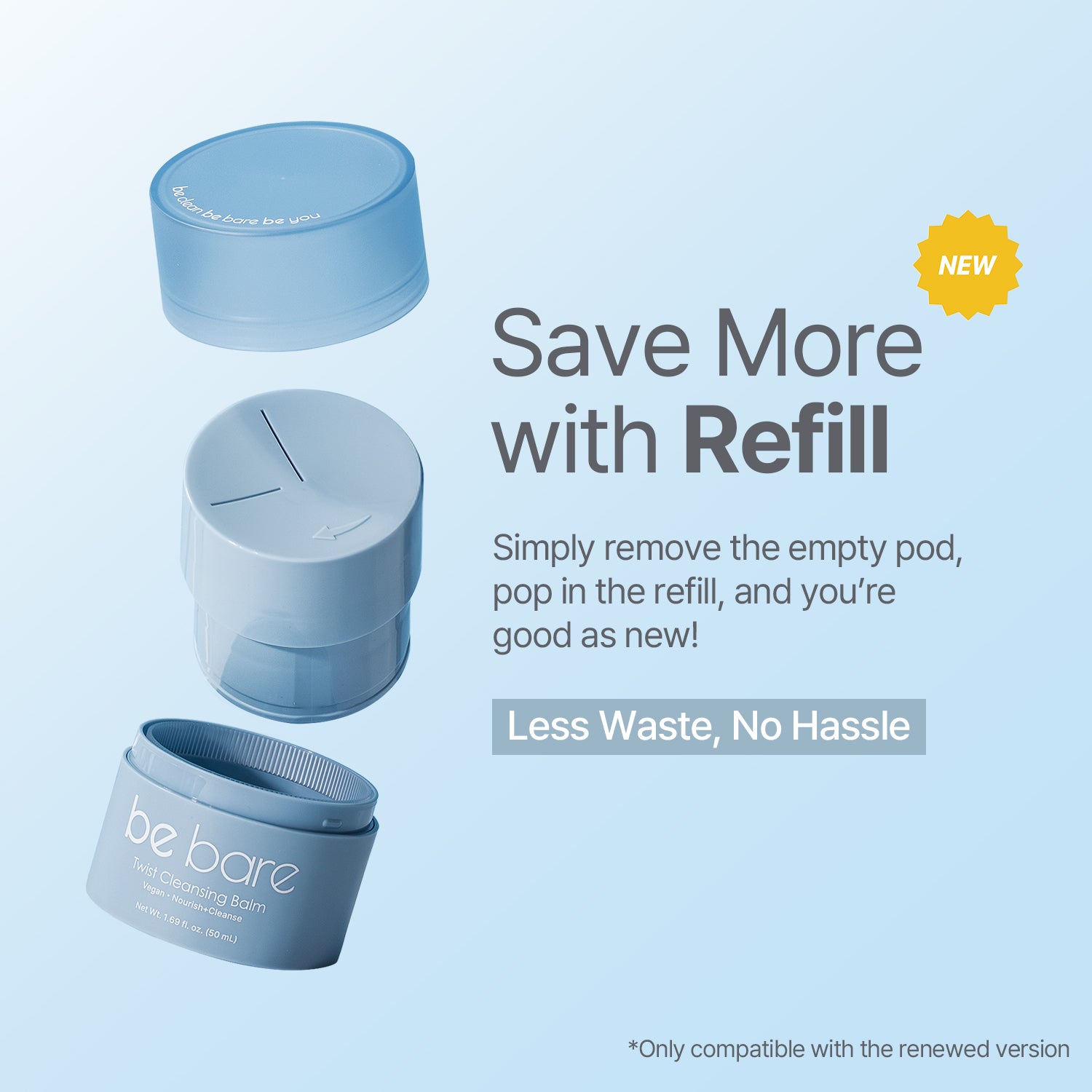 Get double the twist with this special duo set! This bundle includes our bestselling Twist Cleansing Balm–a nourishing vegan cleansing balm that removes makeup and impurities–AND a full-size refill pod. Simply pop out the old pod, click in the new one, and keep on twisting.